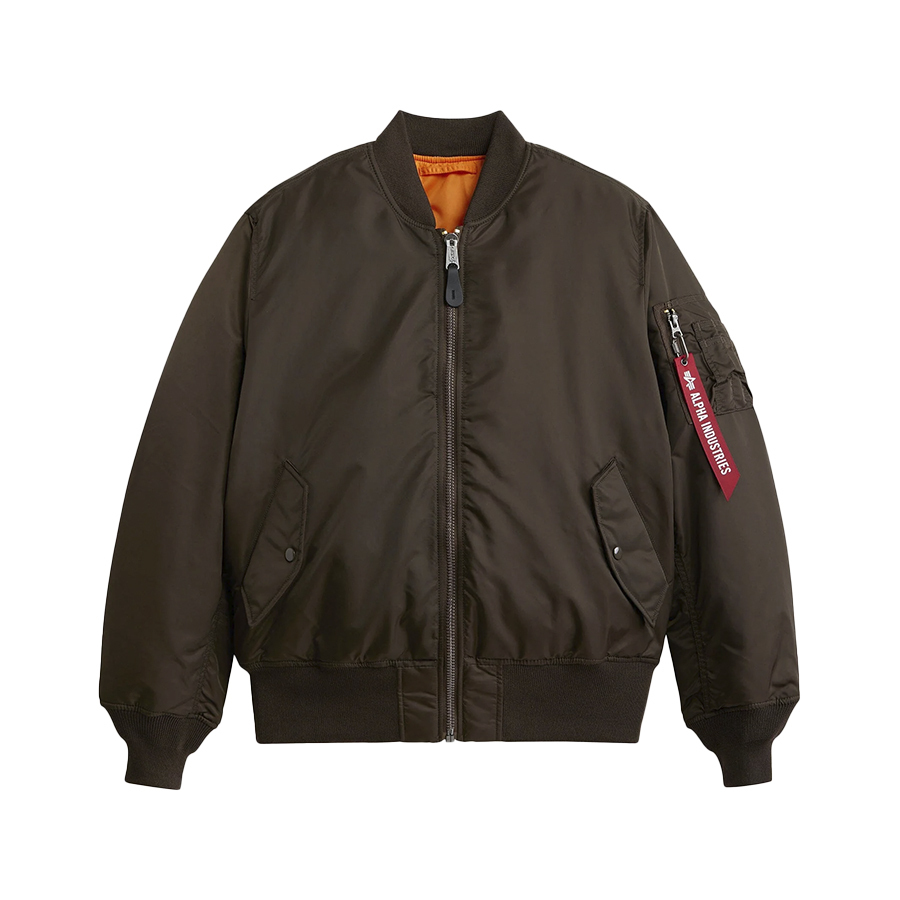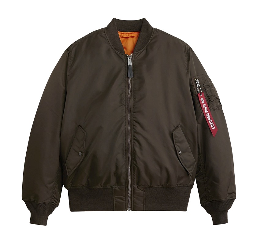 Бомбер Alpha Industries MA-1 – самый востребованный бомбер в мире. Он имеет прямой фасон, изготовлен из прочного водостойкого нейлона и может носиться на обе стороны. Обратная сторона бомбера оранжевая. Такой яркий цвет выбран не случайно: куртка была создана для военных летчиков армии США в 60-е годы прошлого века, и яркая сигнальная подкладка была необходима для более быстрого обнаружения катапультировавшихся пилотов в труднодоступных местах. Куртку комфортно носить при температуре от 0 до +10 градусах, есть подкладка с утеплителем, эластичные манжеты, рукава и пояс. Также в комплекте фирменная ярко-красная лента-брелок.