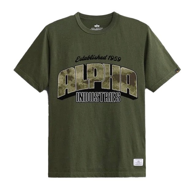 Футболка Alpha Industries Alpha Camo Logo Tee - повседневная футболка свободного кроя с принтом на груди.  Футболка выполнена из 100% хлопка, приятна на ощупь и практична в использовании.